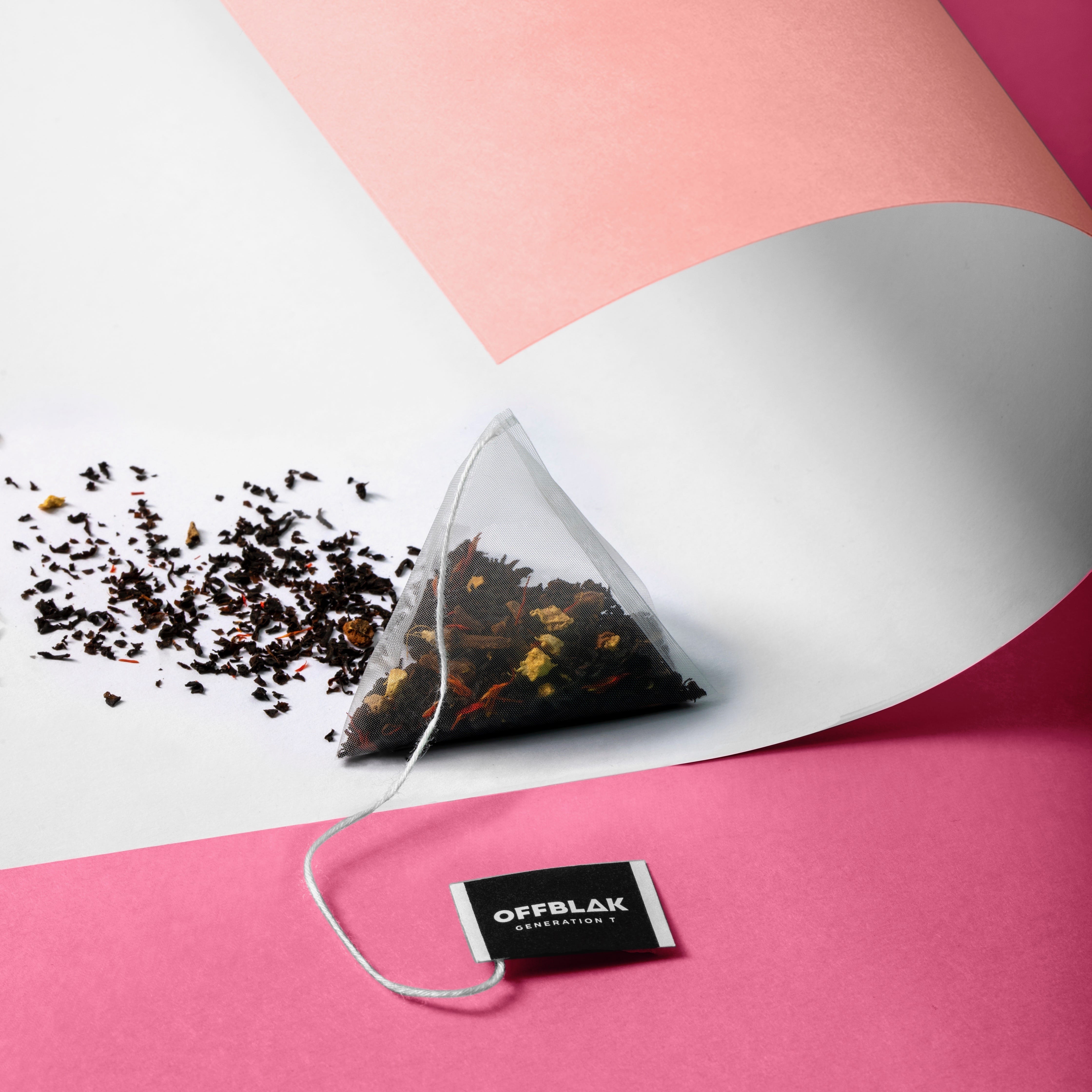 At OFFBLAK we take responsibilitea ;). Therefore, we aim, wherever possible, to use recyclable packaging. We have three levels of packaging. The box which contains the tea packs, the actual tea packs that hold the sachets, and then the sachets that hold the individual pyramid tea bags.